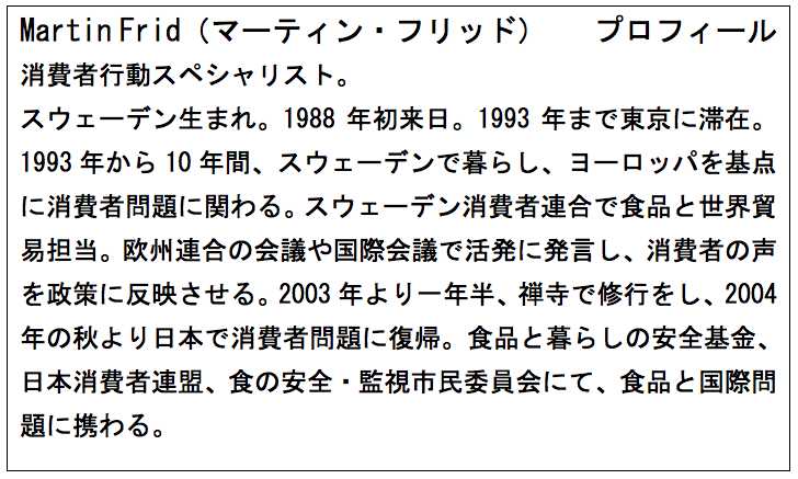 マーティンさんが活動している団体、日本消費者連盟を紹介するページへどうぞ。